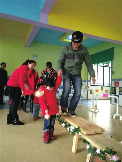 “你养我长大,我陪你变老。”为了让孩子们更好的体验父母,活动现场还特设了“我陪爸妈翻山越岭”。父母戴上眼罩,由宝贝搀扶过独木桥、上下楼梯。家长按照宝贝的指引前行。小朋友橙子全程牵着妈妈,小手拉大手,俨然一个小大人。妈妈在她的指令下,小心翼翼的挪动步子。“虽然很担心被孩子带错路,但她始终紧紧的抓着我的手。”橙子妈妈说,孩子紧抓自己,她能感觉到孩子担心她走丢。大人们体验了原以为很幼稚的活动之后,对自家宝贝多了一分了解。