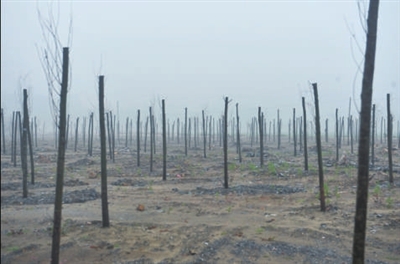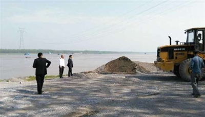 12月的长江赤壁港区,江风阵阵,水雾蒙蒙。曾经的赤壁市源和码头所在地一片寂静,数百棵刚刚栽种的树苗整齐划一,地面上翻新的黄土显示出被平整的痕迹。咸宁市港航海事局的工作人员指着一个通往江边的斜坡说:“这里原来装着‘飞机跳’,可以把货物运到船上。这一大片空地和树林以前就是堆场,堆放着大量沙石。”几个月前,这还是赤壁最大的一个“黑码头”,常年尘土飞扬,车来船往。全市治理非法码头的工作开展以来,这里终于恢复了宁静。