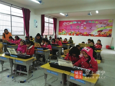 “我会吹很多曲目了。”六年级的胡雨轩学习葫芦丝才一年时间,但是已经学会了很多曲目。“我经常在家练习,弟弟经常缠着要学葫芦丝,我已经是他的偶像了。”胡雨轩说,城里的很多亲戚都参加校外培训,让她很羡慕,现在她也能学习小乐器,感到很开心。
