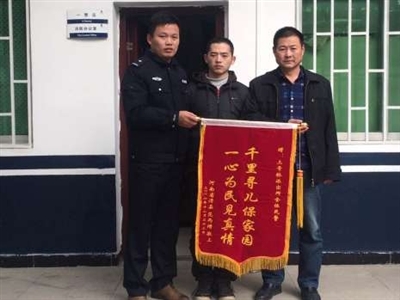 23日上午,河南的范先生将一面写着“千里寻儿保家园,一心为民见真情”的锦旗送到温泉公安分局三号桥派出所民警手中,感谢民警帮助他找回儿子。据悉,范先生来咸寻子无果后向该所民警求助,22日,该所民警捣毁两处传销窝点,解救了范先生的儿子,帮助一年没见面的父子团聚。
