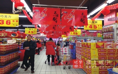 国酒、洋酒、核果、糖果、巧克力、保健品、速溶饮品、南北年货、冬令滋补品……各式礼盒装鲜亮的外包装相比,优惠的价格似乎更能吸引消费者。虽然大部分商品没有大幅降价,但为了争抢春节商机,不少品牌还是推出了一些促销活动,比如“买满多少送多少”、“买一送一”等等。