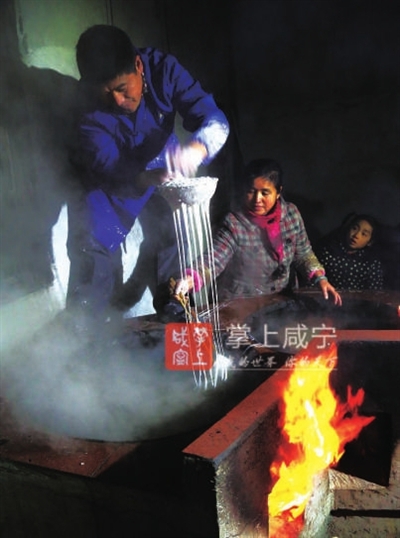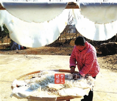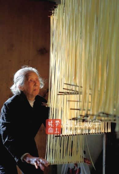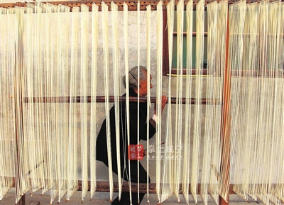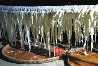 这窗,这帘,就是通山乡间过年必备之物——油面。和面、割面、搓条、盘面、上筷、扯面、分面、晾晒……几十道工序,在长满老茧的手中挂起这一幅幅美丽“窗帘画”……那长长的油面,是来自人与面的融洽,是源于手与面的舞蹈。当回味品尝那长长的、软软的、滑溜溜的油面,在送入口中时,那五味俱全的酸甜麻辣香瞬间袭来,那美妙的年味袭满身心……