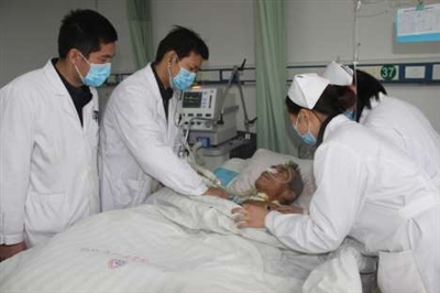 腊月三十,湖北科技学院附属第二医院内科主任、大内科党支部书记彭圣威正在抢救一名危重患者, 充分发挥了一名党员干部先锋模范作用。(记者叶子 通讯员程仁杰)