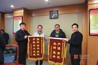 在会谈前,湖北奥瑞金饮料工业有限公司总经理陈中革、红牛维他命饮料(湖北)有限公司总经理葛海一,给省食品药品监督管理局送去“服务高效快捷,护航企业发展”、“严谨高效,热情服务”锦旗,并向他们高效率、勇担当、转作风服务企业表示致谢。