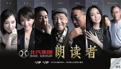 央视着名主持人董卿酝酿筹备接近1年的文化情感类节目《朗读者》,上周末起每周六、日在CCTV—1和CCTV—3黄金档联合播出。节目每期有一个主题词,嘉宾围绕主题词分享人生故事,朗读一段曾经打动自己、激励自己甚至改变自己的文字。首期节目以“遇见”为主题,邀请了知名演员濮存昕、知名企业家柳传志、世界小姐张梓琳、着名翻译家许渊冲等嘉宾。