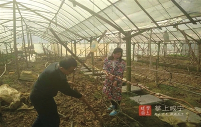 2月14日,记者在咸安马桥镇吕铺村见到了樊义夫妇时,他们正在葡萄园里忙碌着。