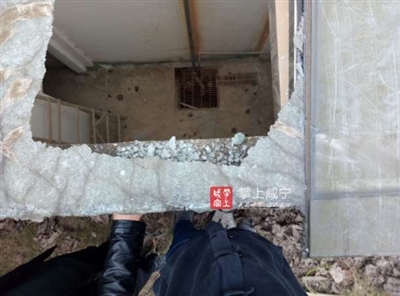 “就是从这摔下去的。”记者看到,事发小区地下泵房在地面有一个高约1.5米的延伸部分,顶部用玻璃覆盖,最边上的钢化玻璃已经完全碎裂破了两个大窟窿。从顶部下去至地下泵房的地面,高度约有7至8米,地面还覆盖着一摊血迹。