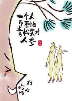 寂地微博上出现了大眼睛的小浣熊,萌萌地捧着一颗心;还有春节时应景的元气小鸡年画,一些网友用做壁纸和表情包。不过,最近大家最喜欢的是“青松”(注:寓意“轻松”)系列。“一个人不要怕,青松(轻松)笑对人参(人生)”,有人说,“爱死这个青松系列了,现在我叫张青松。”再如青松被鸭子啄树干,名为“青松面对鸭力(压力)”,寂地的“冷笑话”挺朴拙,萌萌哒,竟然有一种特殊的魅力。寂地陆续画出了一系列“青松”,包括“青松实现一个小目标”、“青松工作”等等。而“青松过关”竟然真被网友赞“有效”,“昨天用的青松过关做壁纸,结果科二真的过了!表白寂地!”