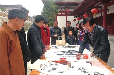 2月18日,我市45名书法家走进潜山寺,挥毫泼墨创作了一批充满禅意的书画作品。此次活动旨在宣传潜山文化古迹和弘扬传统文化,提升寺院的文化品质的同时,让人们体会到佛教戒、定、慧的境界。 李小红 杜培清/摄