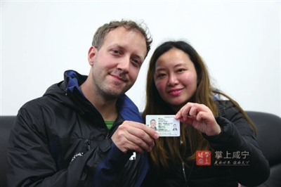 昨日下午,夫妻俩特地从武汉赶回咸宁领中国永久居留证。