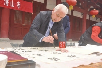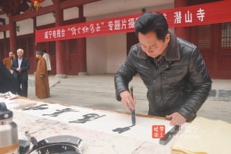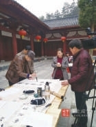 2月18日,咸宁市美协、市书画院、市书法家协会、市金叶书画院共45名书法家走进潜山寺,面 对热情的围观游客们,书画家们“有求必应”, 挥毫泼墨创作了一批充满禅意的书画精品。