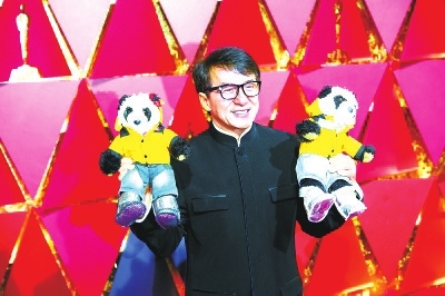 成龙穿中山装抱熊猫宝宝走红毯