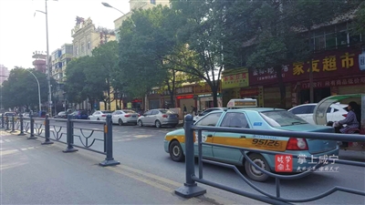 昨日上午,记者在现场看到,一排整齐的道路护栏中间有一段不翼而飞,时常有行人随意从此处通行。市民陈先生指着护栏说,不久前,中心护栏有一截不见后,每到了附近学校放学的时候,会有大量学生从此穿行,存在较大的安全隐患。