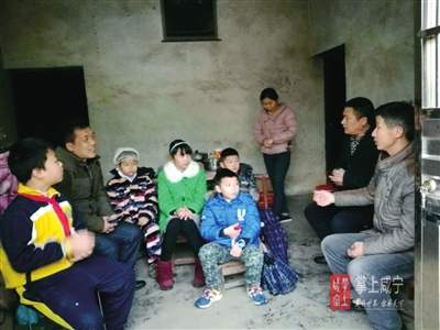 本报讯(通讯员 李攀龙 郑燕 王小兰)2月21日,赤壁市赤马港学校四(2)班的老师和几名爱心同学代表,一起来到赤马港办事处木田贩村十一组看望罹患脑瘤的陈政同学。
