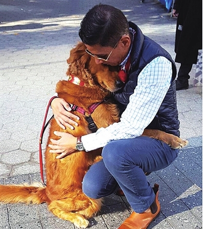 狗是人类的好朋友。最近,纽约街头一只爱抱抱的单身狗成了新晋网红。据悉,这只可爱的金毛寻回犬叫路宝蒂娜(Louboutina),每天下午它都会来到街头上与陌生人拥抱2个小时。狗狗的女主人塞萨尔说,他们从来没有教过路宝蒂娜什么,是它自己学会了这个甜蜜的花招。 (来源:新浪微博)