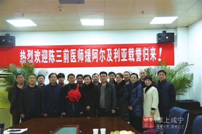 本报讯(记者 叶子 通讯员 陈影 罗婷婷)带着受援国人民的祝福,带着鲜花和掌声。2月19日,赤壁市人民医院医生陈三前顺利完成两年援非医疗任务,载誉归来。2月21日,他在家乡受到热烈欢迎。欢迎仪式上,赤壁市人民医院负责人肯定了陈三前的工作,感谢他为中国和阿尔及利亚医疗事业做出的贡献,为家乡赢得的荣誉。