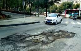 昨日,记者在城区咸宁大道双鹤桥十字路口红绿灯处看到,十字路口右转向道路上出现一处大坑,来往车辆纷纷避让。不少市民表示,希望相关部门能及时把坑填平,消除交通隐患。 赵骥/摄