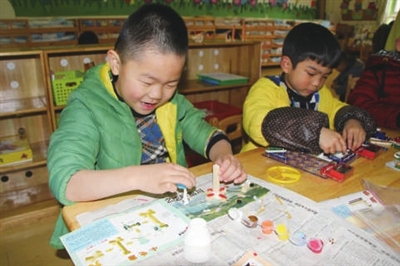 热闹的活动室中,孩子们或穿着自制的纸礼服自信表演、或挥舞着排笔与色彩嬉戏、或埋头于电池与电路的反复连接、或拿着特制的工具组合安装、或按自己设计图纸合作搭建、或在温馨小家中礼貌待客……每个孩子都专注于自己手头上的“工作”,全然不理会旁人的干扰,这或许是广大家长心目中理想的幼儿学习场景。昨日,记者在咸宁市直属机关幼儿园就见到了这鲜活的一幕。