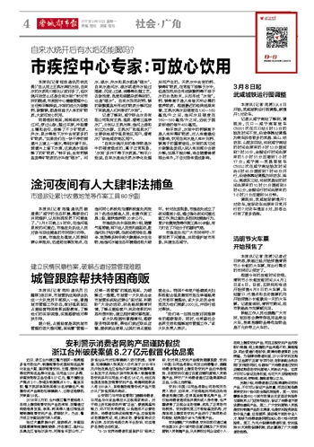 本报讯(记者 程统 通讯员 徐武勇)“自从用上王英水库的水后,自来水的水质和口感比以前好多了,但水烧开后怎么还是会有水垢?”针对市民的疑虑,市疾控中心健康管理中心主任钟平解释说,水垢的成分为碳酸钙、碳酸镁,都是有益于人体的矿物质,大家可放心饮用。