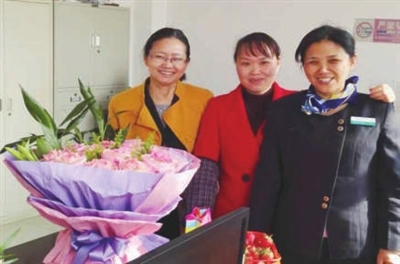 咸安横沟支行在“三八”期间举行向客户送鲜花、送护理活动。