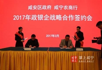 本报讯(记者 徐浪 通讯员 聂宏武 钟敏)10日下午,咸安区政府、咸宁农商行2017年政银企战略合作签约会在咸宁碧桂园隆重举行。