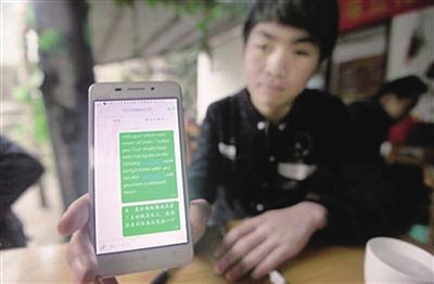 “他教我学英语,我教他学中文。”毛召木打开手机QQ,翻出与美国网友“Faith”的聊天记录,毛召木经常用英语写小文章,让“Faith”指导其语法。