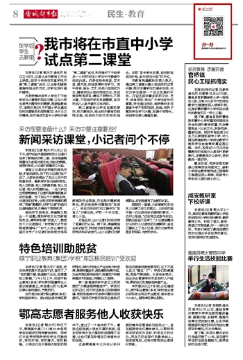 我市将在市直中小学试点第二课堂