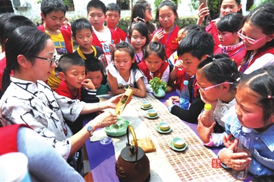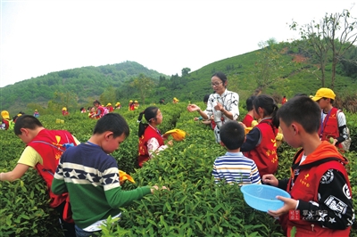 15日,香城都市报100余名小记者来到咸安区大幕乡白云山茶场,实地体验采茶乐趣,并观摩茶叶制作流程和茶艺表演,感受浓郁的茶文化。 赵忠志 陈婧/摄
