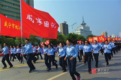 4月15日,艳阳高照,咸宁国地税联手“相约微马与税同行”,打出“助威微马、助力企业、助推发展”的口号,掀起第26个税收宣传月活动高潮。当日,国地税200多名干部职工参加活动。整齐的队列、高高的旗帜、响亮的口号,成为2017春季咸宁香城微马活动一道亮丽风景线。