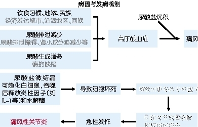 痛风:是一种单钠尿酸盐沉积于骨关节、肾脏和皮下等部位,所致的急、慢性炎症和组织损伤,与嘌呤代谢紊乱及或血尿酸排泄减少所致的高尿酸血症直接相关,属于代谢性风湿病范畴。