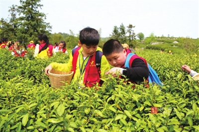 15日上午,本报120名小记者沐浴着春风,来到坐落于咸宁市咸安区大幕乡双垄村白云山,尽情享受自然,感受采茶的乐趣,了解茶叶制作工艺及茶文化。