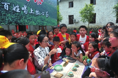 结束采茶,饶老师亲自给小记者们展示了一段茶艺表演,小记者们也是跃跃欲试,学会了泡茶的技巧。