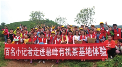 4月15日,海拔700余米的白云山幕峰有机茶基地充满了孩子们的欢声笑语。来自我市市区几所小学的120余名香城都市报小记者在茶园开展实践采访活动。他们在本报记者的带领下,走进大自然的课堂,自己动手采茶,学习茶叶的基础知识,了解咸宁当地茶文化、茶历史。