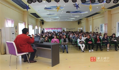 近日,市直机关幼儿园推出了“学前教育大家谈”专题活动,这是继“家长进课堂”、“家长体验督导”等传统共育活动后又一新举措。这项活动将定期邀请我市各界具有影响力的专家以不同的教育视角畅谈学前教育,携手营造真正符合孩子成长需求的家庭环境,搭建家园共育新平台。图为湖北科技学院教育学院党总支书记、院长吴亚林教授d的第一讲《谈儿童本位的教育》。