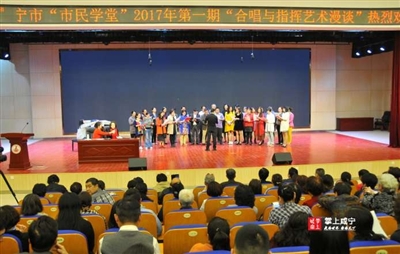 中央歌剧院独唱演员、文化部老艺术家合唱团常任指挥、维也纳童声之友合唱团指挥梁闰妮和着名女高音歌唱家、原中央歌剧院合唱团副团长闫秀芬老师,以《合唱与指挥艺术》为题,为前来听课的500余名声乐爱好者们授课。