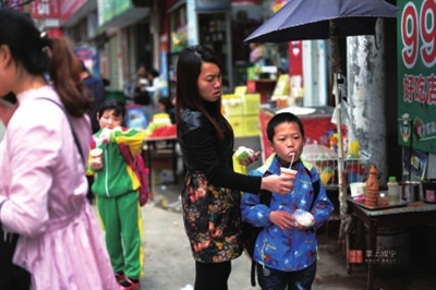 孩子吃早餐的风景中,鼓着腮帮子的男生后面,模糊的女孩微微“笑”出了丰富多彩的生活……