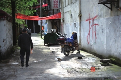 繁华城区的背街小巷,老旧房墙上大大的“拆”字和远处红红的条幅,都在讲述城市发展的故事……
