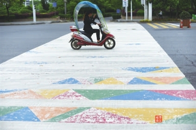 10点25分,再出发。经购物公园,转入淦河大道,一直往前走,过桥右转经滨河西路,过咸宁第一条彩色斑马线,直达市人民广场。