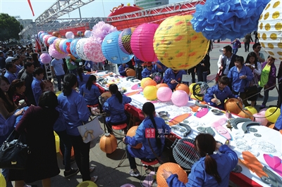 在灯笼制扎技能赛区,10名女工依次坐开,随着裁判一声计时开始,她们麻利的投入到比赛中。装模、穿线、贴纸、晒干、下模、封口……这些在外人看来一道道复杂的工序,在女工们手中变得熟练自如起来。