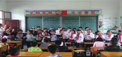看着操场上摆放的上千册崭新书本、几十个书包、各式各样的文具、体育用品和音响器材,在下小学师生的脸上洋溢着幸福的笑容。仪式结束后,咸宁外国语学校的孩子们走进了在下小学孩子们的课堂,一同上了一节生动有趣的音乐课。