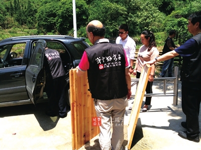 石门村村委会副主任夏来顺说,几天前听说艺术家们要来,他就作好了“索画”的准备,今天如愿以偿拿到了8幅作品,真是高兴。他说村委会留了5幅,自己要了3幅,特别是书法家华先应为鼓励他儿子好好读书,写的一首励志书法作品让他特别开心。