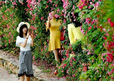 昨日,记者在城区十六潭公园看到,园内百花争艳,前来赏花的市民络绎不绝。