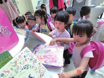 与此同时,市直属机关幼儿园还重磅推出了一个新的节目:图书诞生记。5月3日至5日,孩子们分不同班级,在老师和家长志愿者的带领下,来到武汉参观长江少儿出版社。孩子们排着整齐的队伍,一个个瞪着好奇的大眼睛来到编辑部,看到叔叔阿姨们专心致志地为小朋友们写书,为图书配上有趣形象的图画,并且了解了一本书是如何诞生的。通过实地参观及与工作人员的互动,孩子们大开眼界,见到了洞洞书、立体书、口袋书、会动的书、有气味的书、有声音的书、最大的书、最长的书等等,孩子们争先恐后地看一看、摸一摸、闻一闻,兴奋不已,意犹未尽。在参观过程中,孩子们专注的神态、痴迷的眼神让人感动,也让大家感受到,优质的书籍是赋予孩子最好的礼物。丰富的阅读形式,将阅读活动融入到孩子们喜爱的游戏中,才能真正从幼儿心灵深处激发他们对书籍的兴趣,对阅读的渴望。参观活动对孩子们来说是一次特别的体验,也极大地激发了孩子们的阅读欲望。