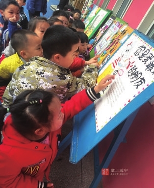 长廊边,家长们精心选择并制作的“好书推荐”,成为了幼儿园一道亮丽的风景,吸引着成群的孩子们驻足于此。