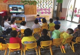 教室里,轮番出场的故事爸妈们带来了内容丰富的绘本、制作精美的PPT,惟妙惟肖地扮演着故事里的角色,带着孩子们走进一个又一个新奇的故事王国。