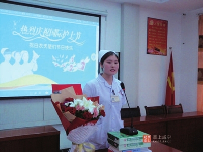 本报讯(记者 叶子 通讯员 格红超)5月11日下午,嘉鱼县中医院举办“5·12”国际护士节演讲比赛,来自5个科室的30名护理人员参加比赛。该院副院长雷四清、护理部主任任芬及医院各科室护士长参加比赛。