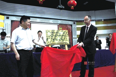 5月17日,英国诺森比亚大学与鄂南高中举行友好学校缔结仪式,并为鄂南高中语言培训中心成立揭牌。 毛亚轩/摄