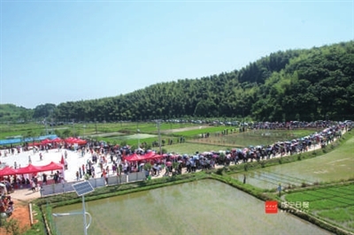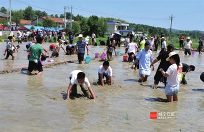 插秧、捉鱼、看插秧舞……5月28日,由咸安区高桥镇人民政府、共青团咸安区委举办的“乡约白水畈·粽情端午节”在高桥镇澄水洞村大屋万文化广场盛大启幕,几千名游客和市民涌往插秧、摸鱼比赛现场,在泥水中狂欢,体验农耕乐趣。