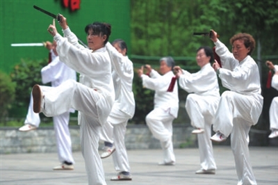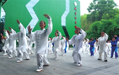 初夏的潜山,景色怡人,空气清新。6月3日清晨,100余名太极拳爱好者在潜山竹子博览馆前齐打太极,一招一式张弛有度,如行云流水,如此壮观的场景成为潜山公园里一道靓丽的风景线。