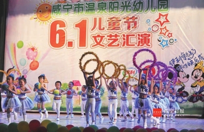 本报讯(记者 方达星 赵忠志) 6月1日上午,咸宁市温泉阳光幼儿园隆重举行“庆六一、展风采”文艺汇演活动。近千名师生家长欢聚一堂,载歌载舞,共同庆祝六一国际儿童节的到来。